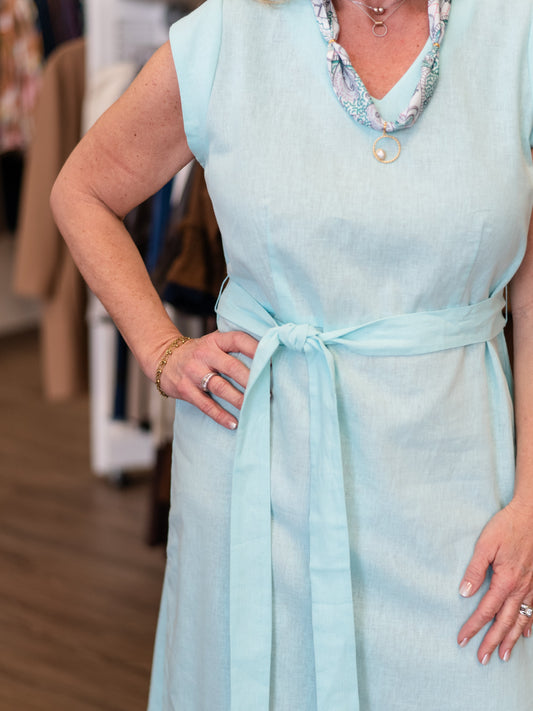 Linen Blend Midi Dress Aqua by Boho Chic