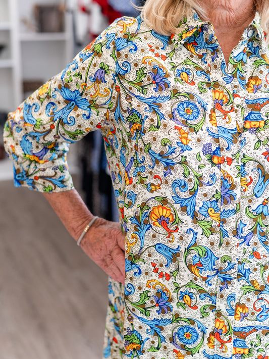 Floral Paisley Button-Front Midi Dress by Boho Chic