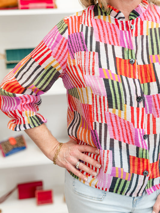 Multicolor Patchwork Print Shirt by Trisha Tyler