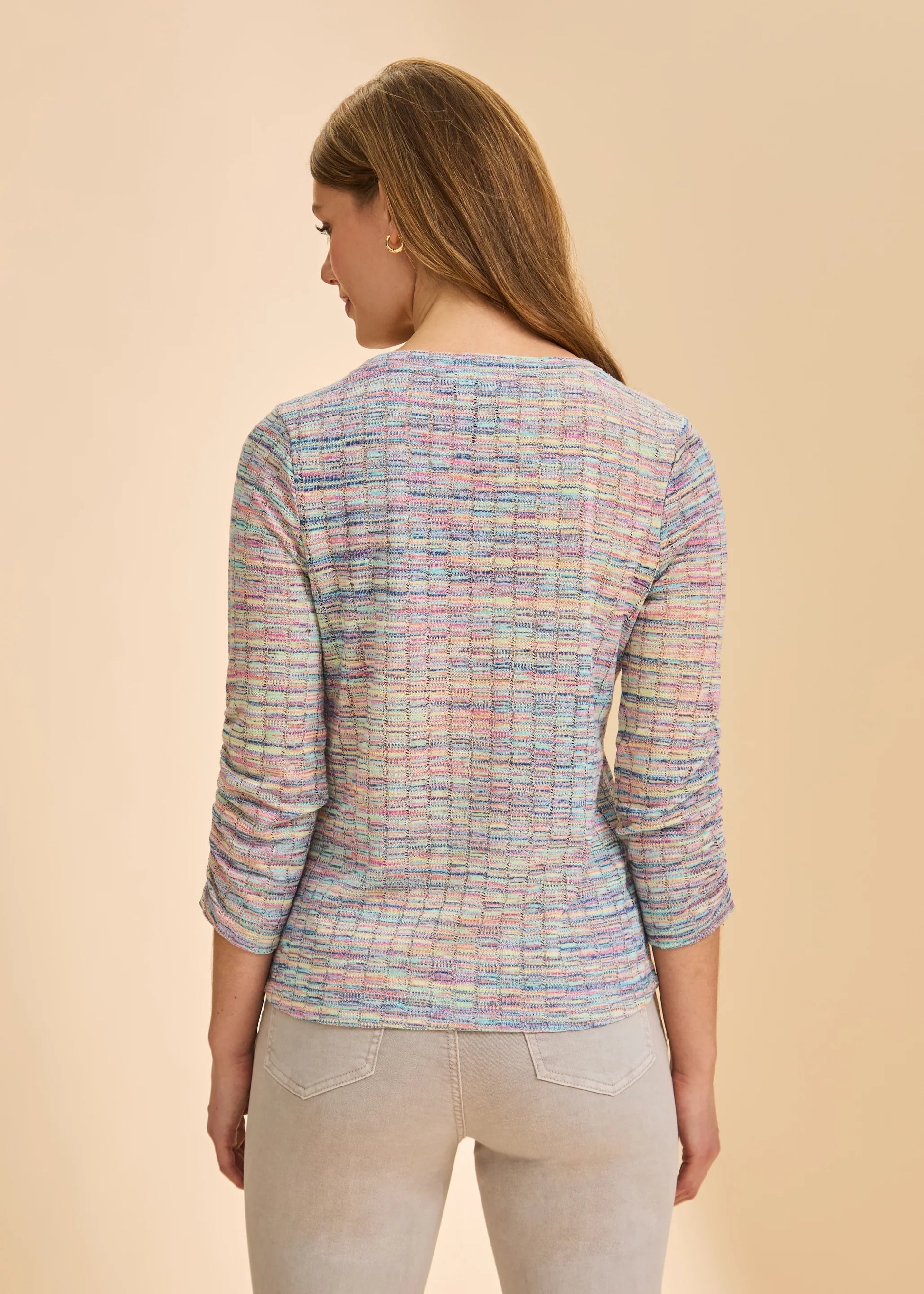 - 3/4 Sleeve V-Neck Top Rainbow